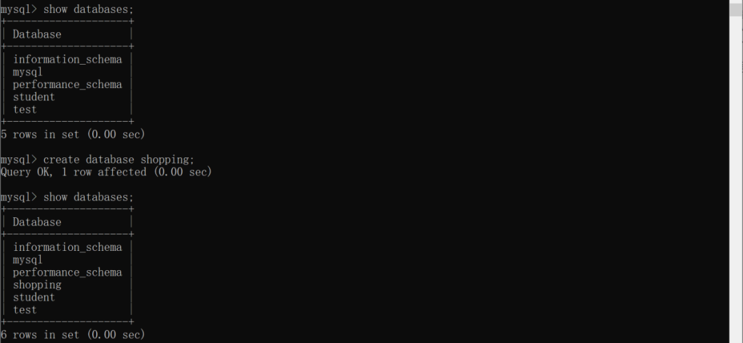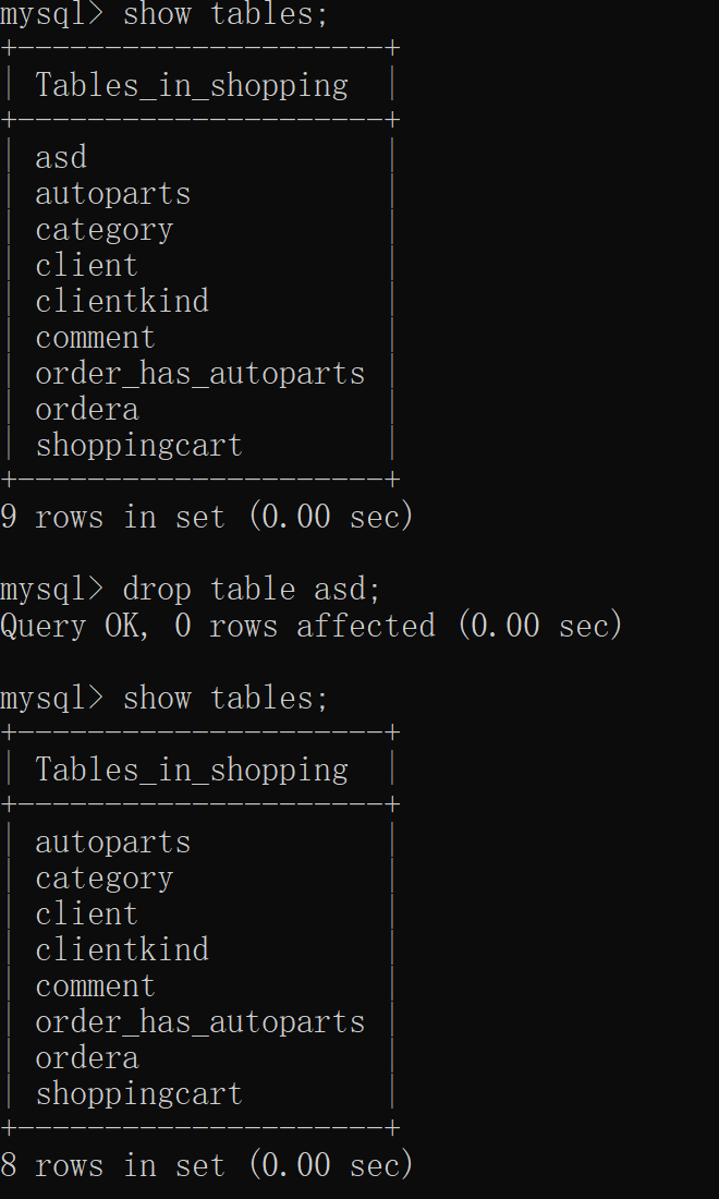 使用SHOW DATABASE、USE DATABASE、DROP DATABASE语句管理“网上商城系统” Shopping数据库。