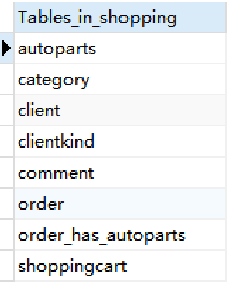 在Shopping数据库下,参见3.5节,创建表3-4~表3-11的八个表