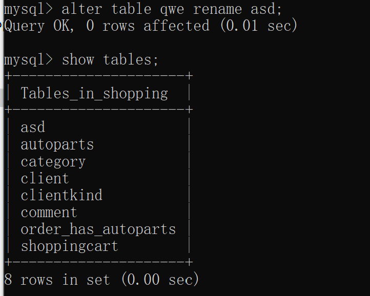 使用ALTER TABLE、RENAME TABLE语句管理表